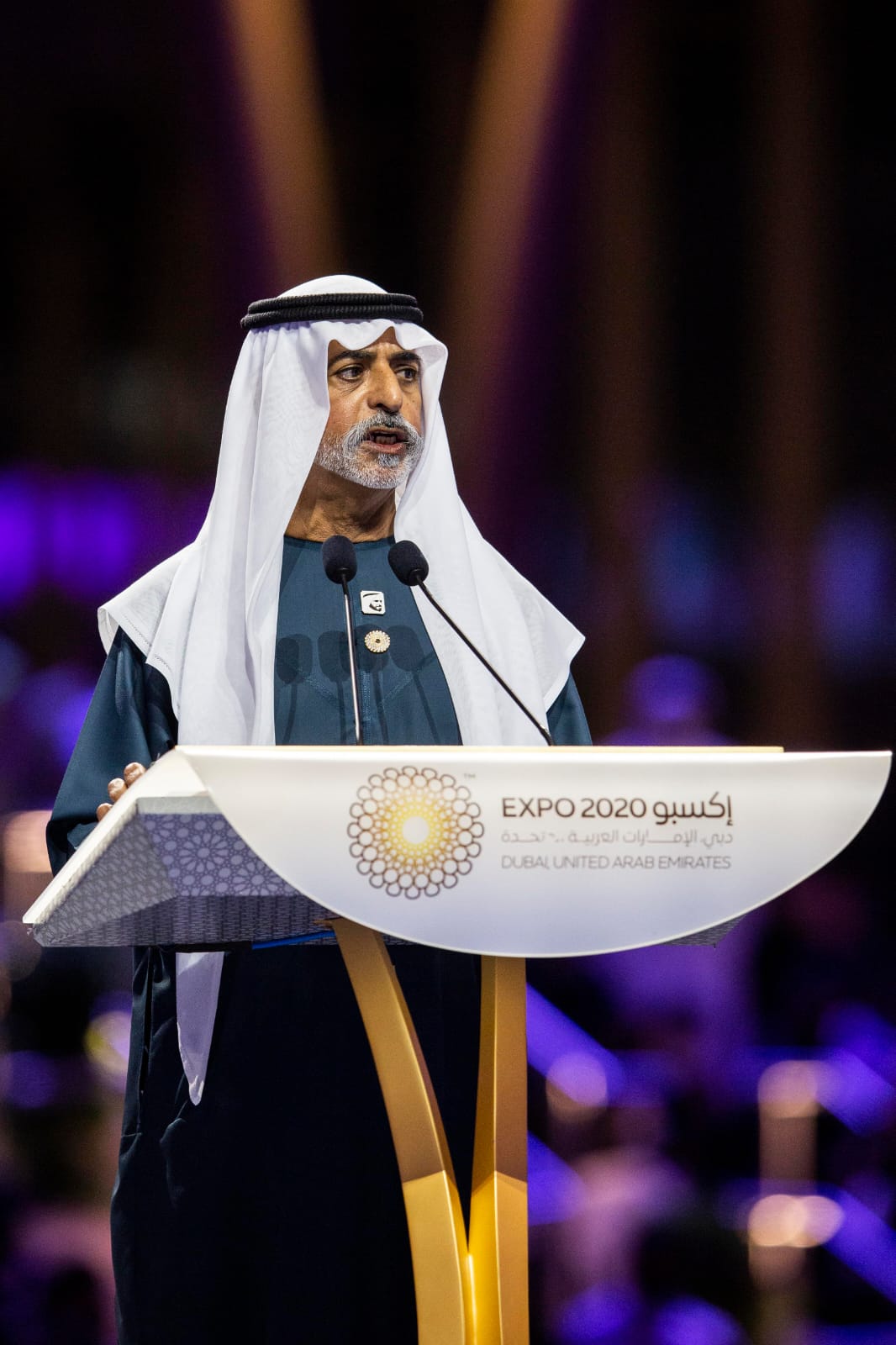 وأضاف الشيخ نهيان في كلمته الافتتاحية، أنه في ظل حضور العالم في إكسبو 2020 دبي، أصبحت الإمارات دولة المواطنة الشاملة؛ دولة التسامح والأخوة الإنسانية؛ دولة تتبنى السلام وسيلة وغاية، وتتخذ من التسامح والتعاون والوفاق منهجاً وطريقة، وتحرص كل الحرص على التعاون والتنسيق مع كافة الأمم والشعوب، وتعمل باستمرار على تمكين جميع الأفراد وجميع المجتمعات البشرية، للإسهام الكامل في جهود التنمية المستدامة في العالم، باعتبار أن ذلك كله هو جزء أساسي من الإرث الخالد الذي تركه مؤسس الدولة المغفور له، الشيخ زايد بن سلطان آل نهيان، طيب الله ثراه، وهو الذي كان يؤكد دائماً قولاً وعملاً، أن الصفاء بين البشر والحوار والتواصل الإيجابي هو طريق أكيد لتحقيق الخير والرخاء في المجتمع والعالم.