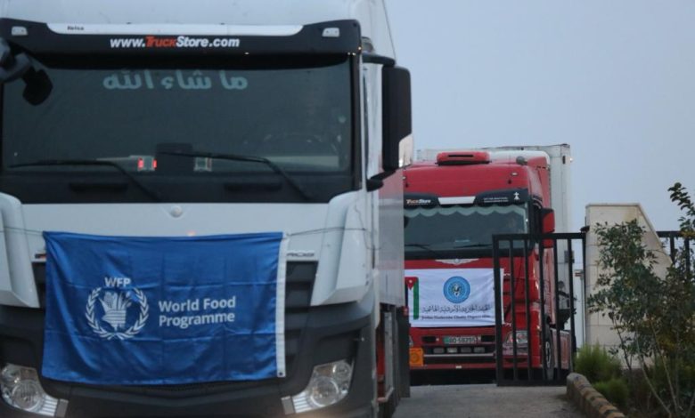 سيرت الهيئة الخيرية الأردنية الهاشمية بالتعاون مع برنامج الأغذية العالمي قافلة مساعدات غذائية جديدة إلى أهلنا في قطاع غزة تتكون من ٤٦ شاحنة بحمولة ٧٥٠ طن من المواد الإغاثية.