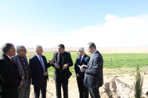 وجال العيسوي في مرافق المشروع، حيث استمع إلى إيجاز من المهندس المعايطة حول مراحل تنفيذ المشروع الذي يقام على مساحة إجمالية تقدر بـ 1500 دونم، يتم استثمارها في زراعة الأعلاف، ويستفيد منه مربو الثروة الحيوانية، إذ شملت المرحلة الأولى منه زراعة 100 دونم.