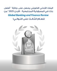 للعام الثالث على التوالي ٠٠ الأردني الكويتي “أفضل بنك في الأردن بمجال المسؤولية المجتمعية” لعام 2025
