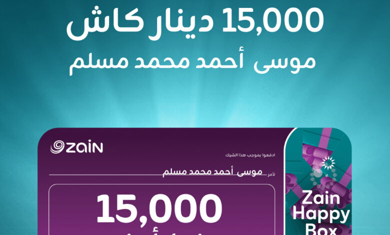 زين تعلن الرابح الثاني بجائزة الـ 15,000 دينار ضمن حملتها الأضخم “Zain Happy Box”