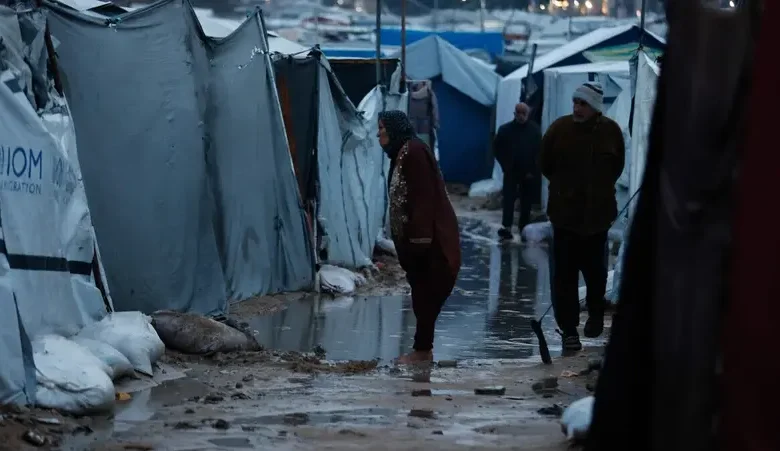 وكانت رياح قوية وأمطار غزيرة، تسببت مساء أمس في غرق عدد من خيام النازحين وتطاير أخرى بمناطق متفرقة من غزة، بفعل منخفض جوي يضرب القطاع، ما فاقم معاناة العائلات الفلسطينية النازحة. إذ غمرت المياه خياما تؤوي نازحين في مناطق منخفضة، فيما اقتلعت الرياح خياما أخرى، ما اضطر عائلات، بينها أطفال، للخروج إلى العراء وسط طقس بارد.