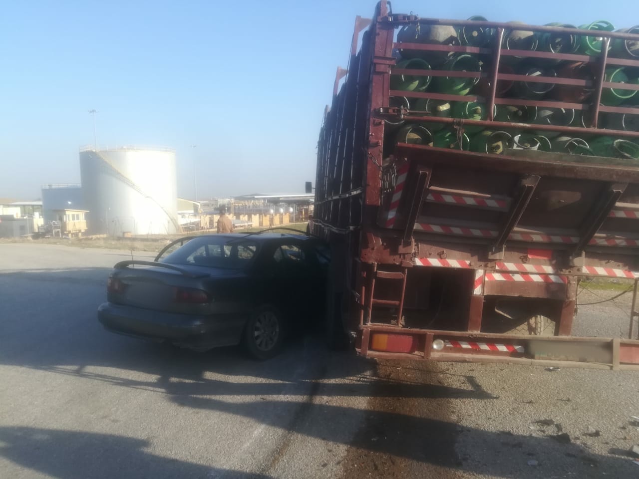 توفي شخص اثر حادث تصادم بين مركبة شحن معدة لنقل اسطوانات الغاز ومركبة خصوصي بالقرب من جسر النعيمة اربد باتجاه محافظة الزرقاء صباح اليوم الإثنين.